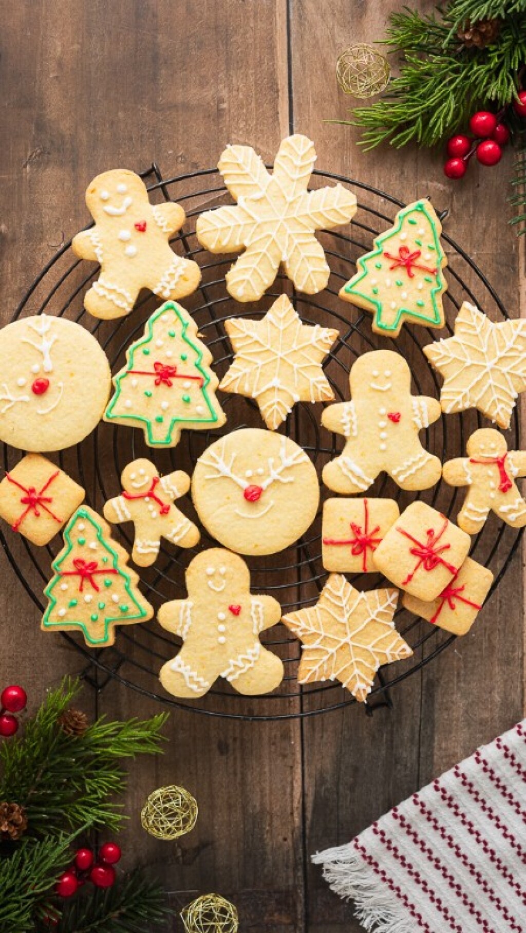 Muniti di questi fondamentali, potete cominciare a impastare, tagliare e poi cuocere i vostri biscotti di Natale decorati, da completare infine con la glassa colorata e i motivi che preferite: la magia del Natale è servita!