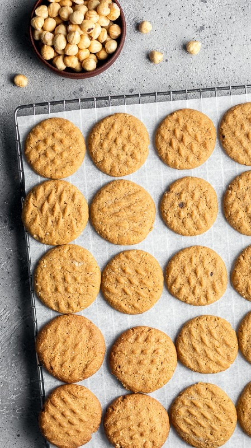 La ricetta prevede la realizzazione di un "burro" di nocciole, una crema che si ottiene molto facilmente frullando la frutta secca insieme a un po' di olio di semi. Il segreto che dona ricchezza e profumo a questi biscotti.