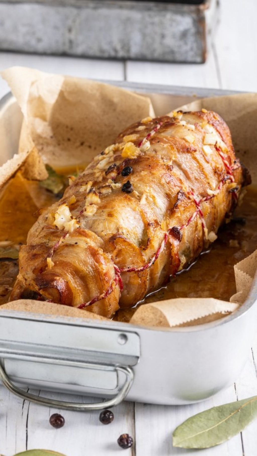 La pancetta con cui è bardata la lonza rende questo secondo piatto di carne particolarmente appetitoso e saporito, oltre a dare una varietà di consistenze alla fetta che viene servita. La cottura in forno, poi, mantiene l'interno morbibo e succoso.