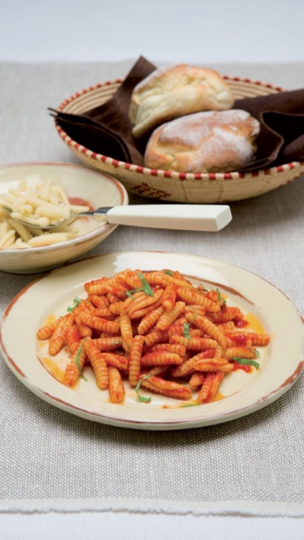 Dividete la pasta in più parti e con ognuna formate dei rotolini di circa un centimetro di diametro, tagliateli a tronchetti lunghi più o meno due centimetri, passateli sul retro di una grattugia, disponeteli su un telo da cucina, spolverizzateli con del semolino o della semola, lasciateli asciugare. Lessate gli gnocchetti in abbondante acqua poco salata e ritirateli con la schiumarola via via che, dopo la ripresa del bollore, vengono a galla. Conditeli con salsa di pomodoro o di carne.