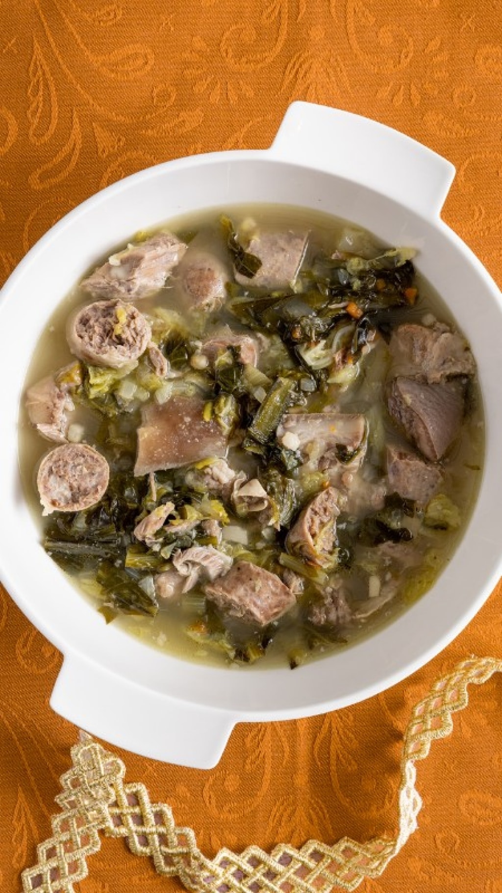 La minestra maritata è un primo piatto della tradizione napoletana, una zuppa a base di carne di maiale e verdure invernali molto ricca e corposa, perfetta per una cena in famiglia quando fuori le temperature si fanno più rigide e tradizionalmente preparata per il Natale.