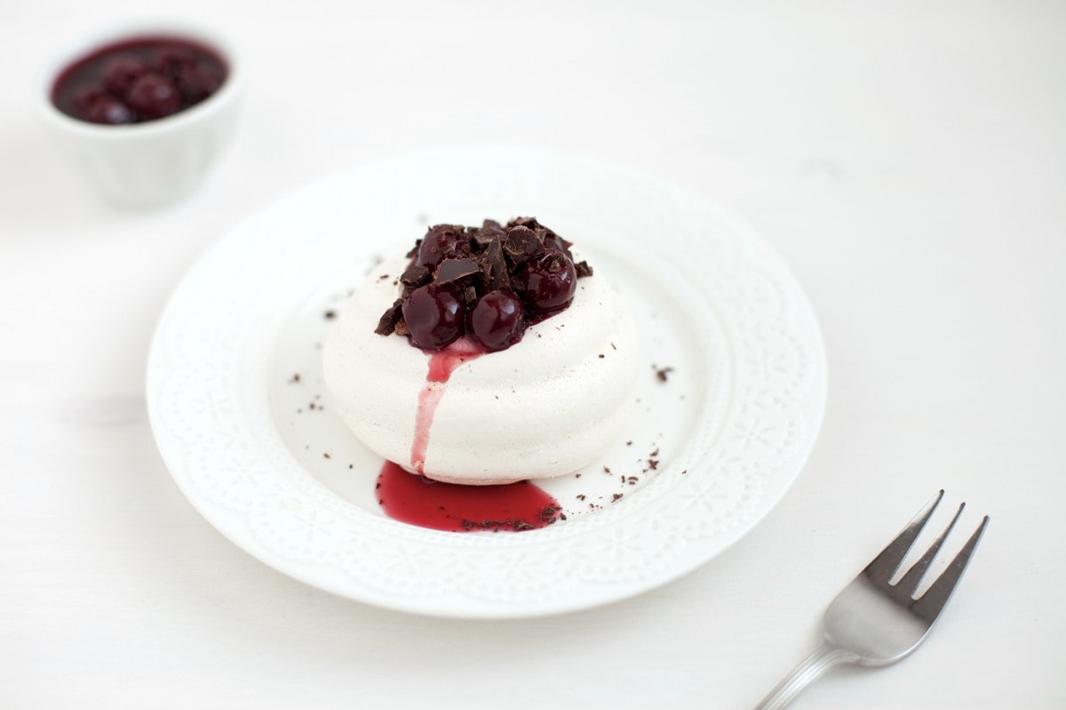 Cuoci nel forno già caldo a 120° per circa 1 ora: la meringa dovrà essersi rassodata esternamente senza apparire dorata. Fai raffreddare su di una griglia per dolci. Pochi minuti prima di servire, monta la panna insieme al kirsch e disponila nell’incavo delle mini pavlova. Decora con le amarene, un po’ del loro sciroppo e il cioccolato grossolanamente tritato. Servi subito.