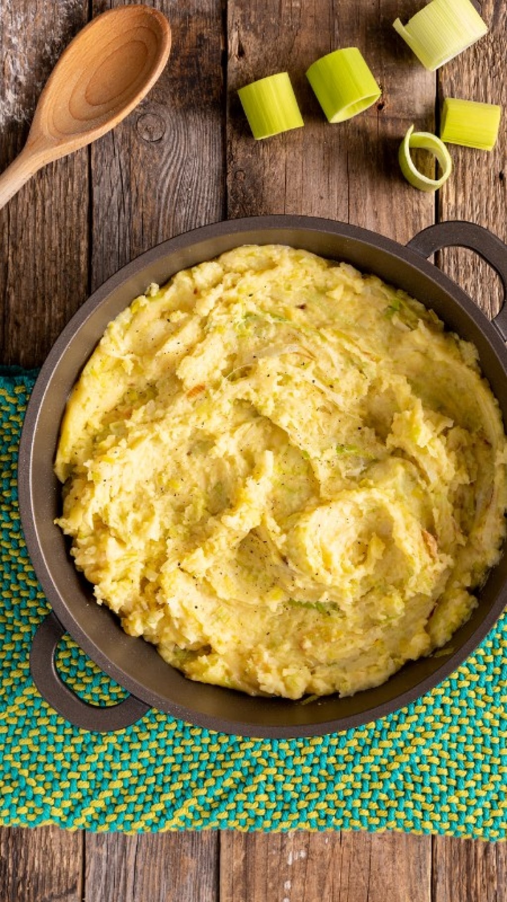 Il purè di patate e porri è una deliziosa variante del classico contorno. Morbido e appagante, resta piuttosto rustico nella consistenza e saporito nel gusto. Una ricetta facile e intrigante che si può proporre anche come portata principale.