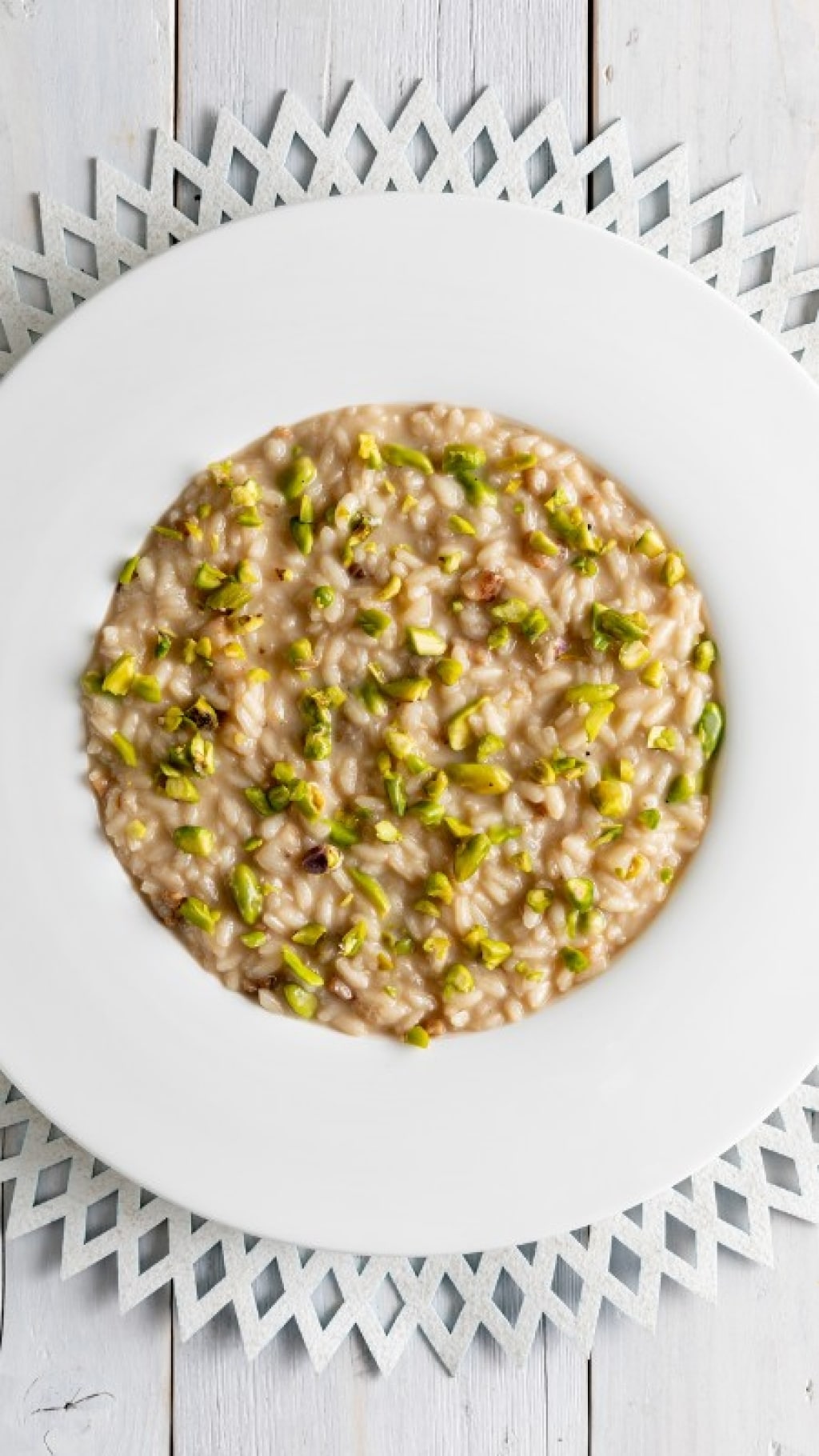 Abbinamento inconsueto, ma vincente per il risotto al pistacchio e pancetta, un primo piatto gustoso e creativo che conquisterà gli amici più curiosi e ha il vantaggio di essere facile da preparare.