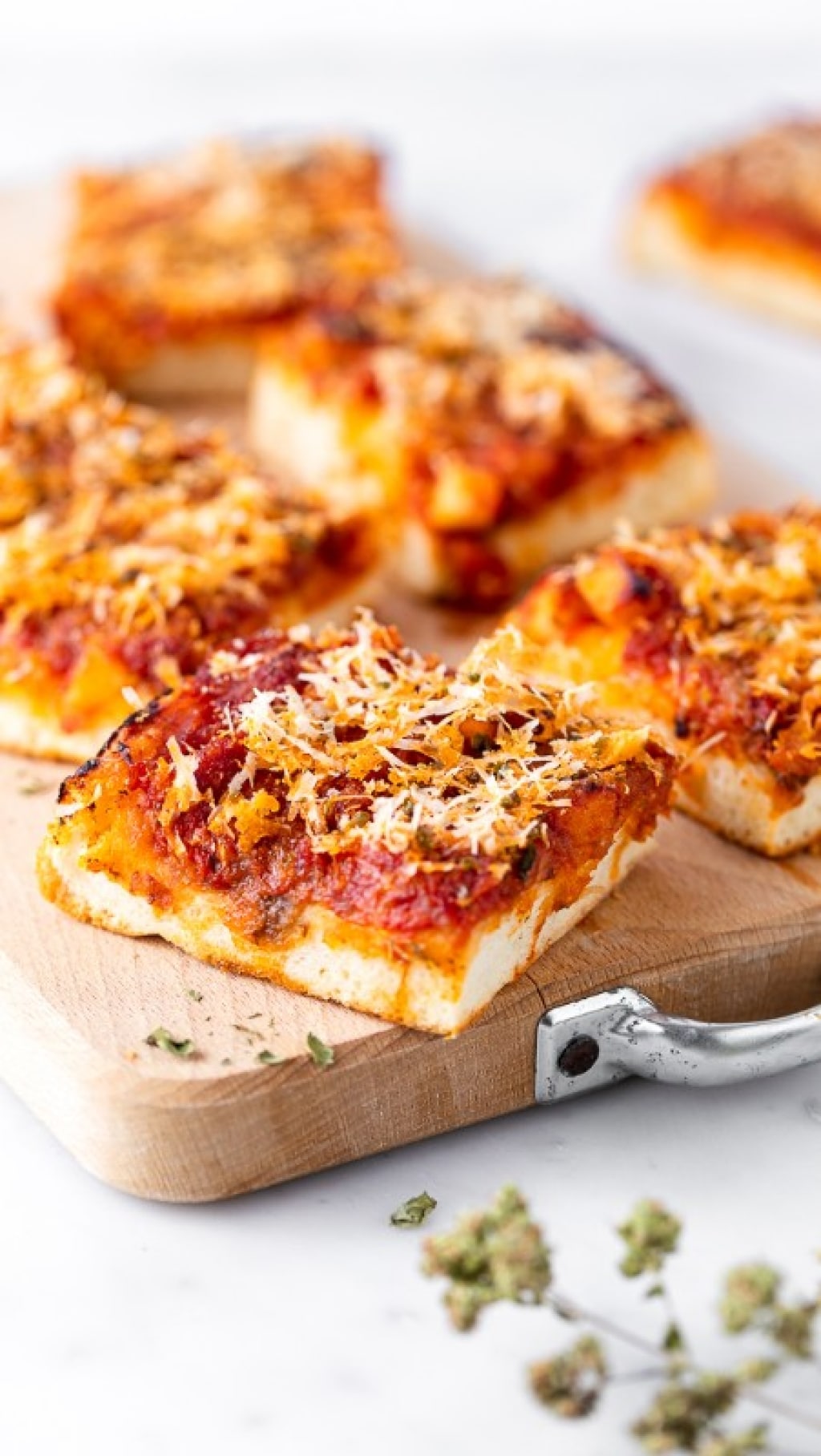 Lo sfincione è uno dei simboli culinari della città di Palermo, una focaccia soffice condita con un sugo di pomodoro e cipolle, acciughe, caciocavallo e origano. Ingredienti e sapori semplici e tipicamente mediterranei per questo lievitato buono da gustare in ogni momento della giornata.
