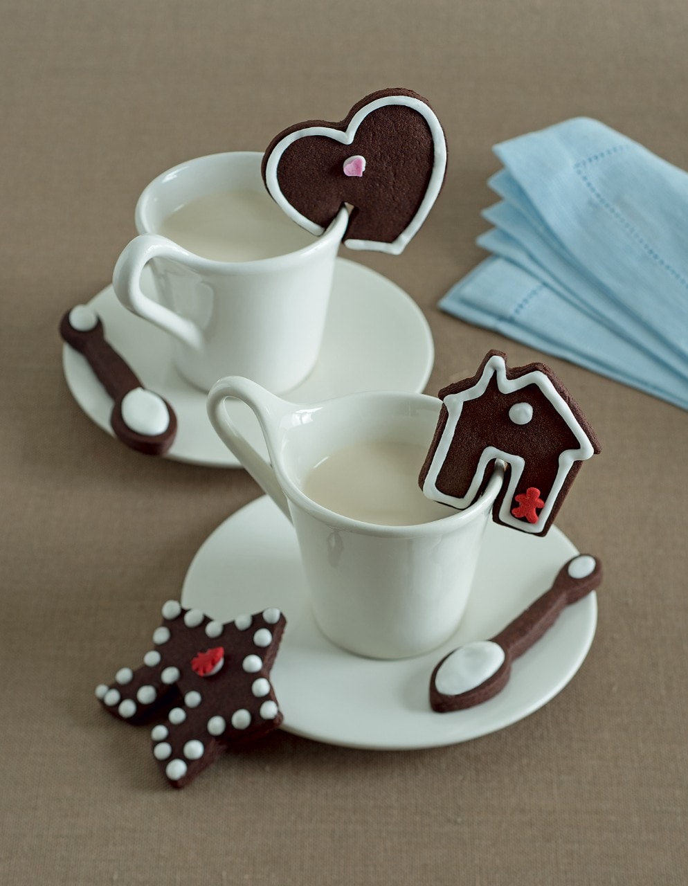 Stendete l’impasto tra due fogli di carta da forno in una sfoglia di circa un centimetro di spessore e, con tagliapasta di varie forme, ricavate i biscotti. Disponeteli su una teglia rivestita con carta da forno e cuoceteli per circa 15 minuti. Trasferiteli su una gratella e lasciateli raffreddare.