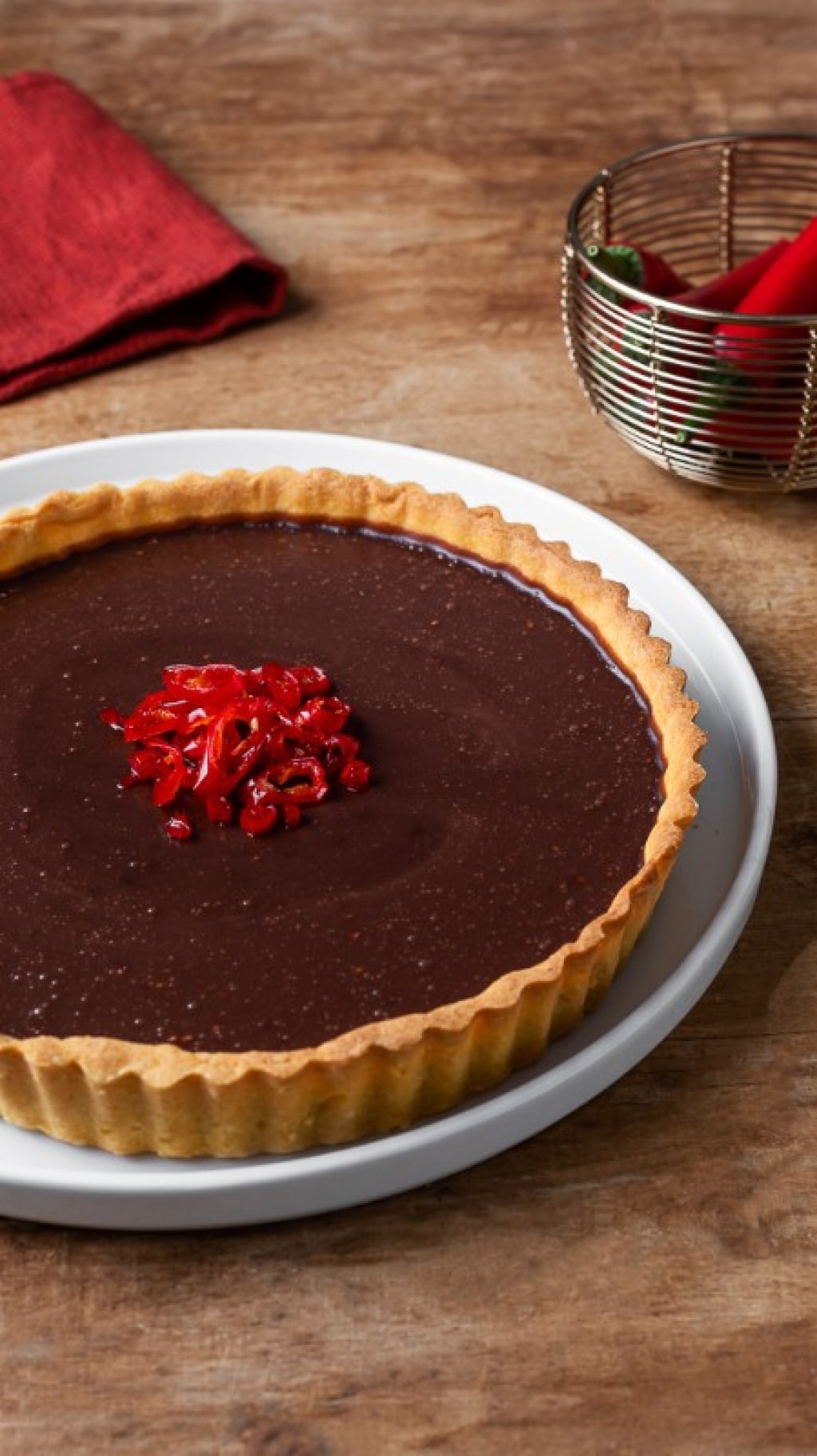 La tarte al cioccolato e peperoncino è un dolce per chi ama i sapori intensi: un guscio di pasta frolla accoglie infatti una ganache fondente dalla spiccata nota piccante. Una torta ghiotta come solo una Crostata al cioccolato può essere, ma più intrigante.