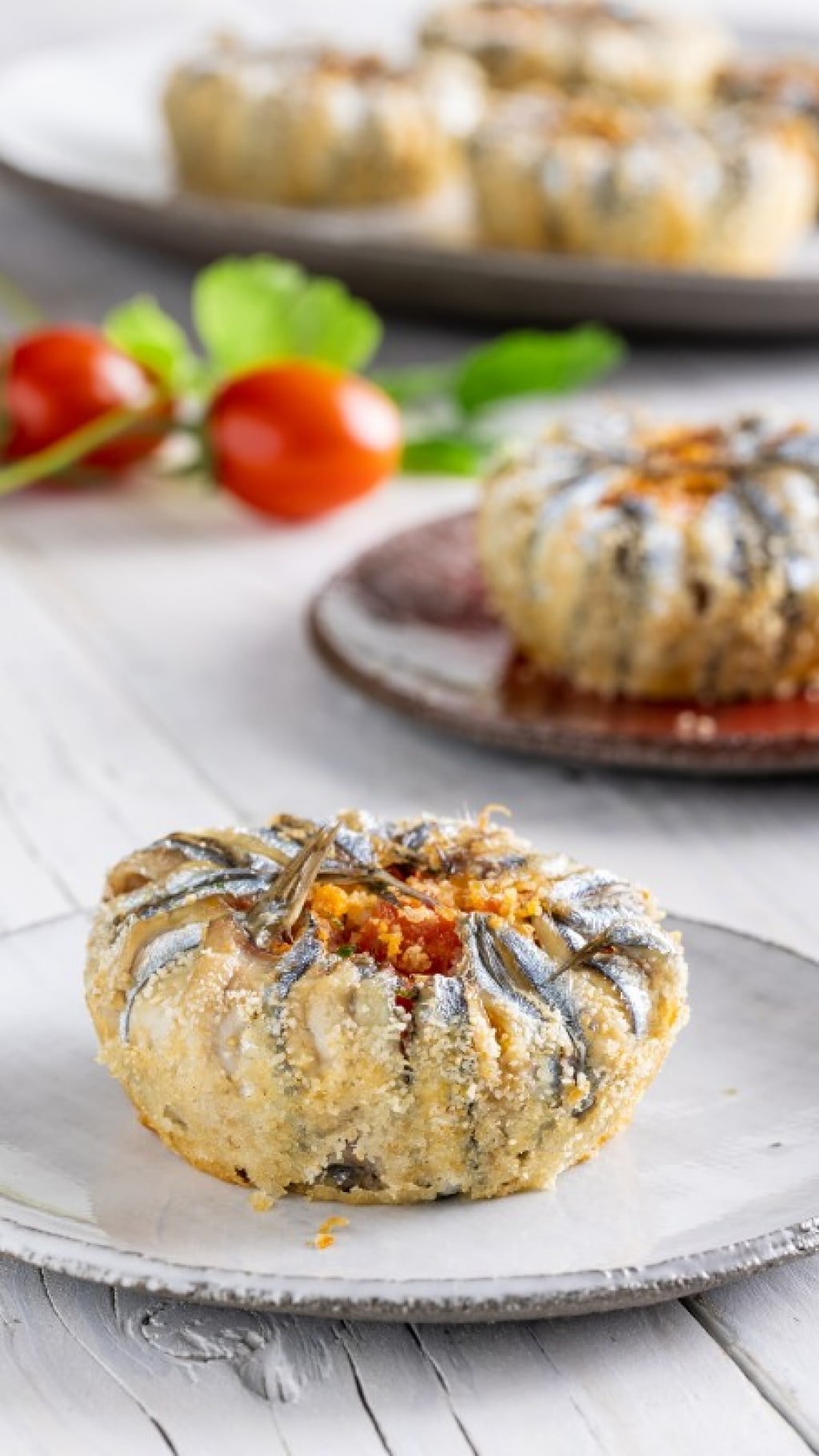 Vi proponiamo la ricetta di un tortino di alici in versione monoporzione, pensato come antipsto oppure come proposta gustosa per un aperitivo a buffet.
