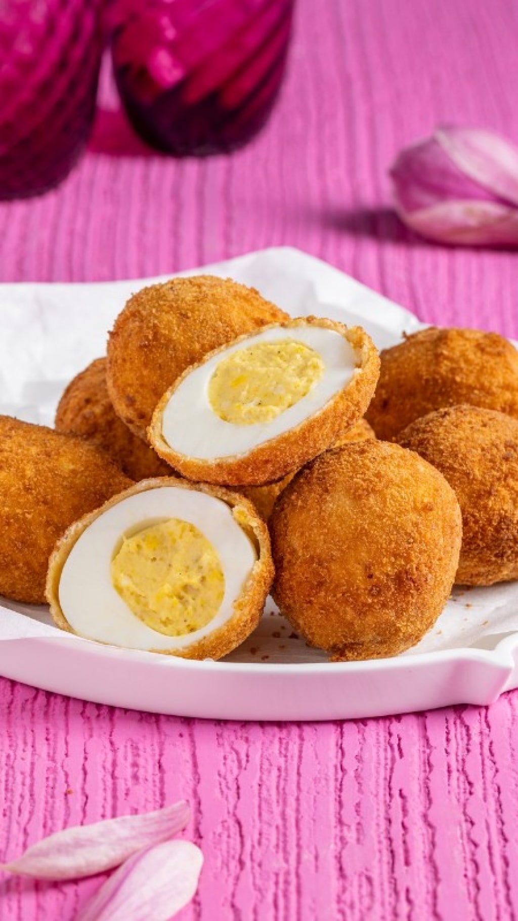 Le uova alla monachina sono un antipasto tradizionale della cucina partenopea, tipico del pranzo di Pasqua ma buonissime tutto l'anno. Sono uova fritte con un cuore morbido che racchiude una gustosa sorpresa. Un'idea divertente, croccante e sfiziosa!