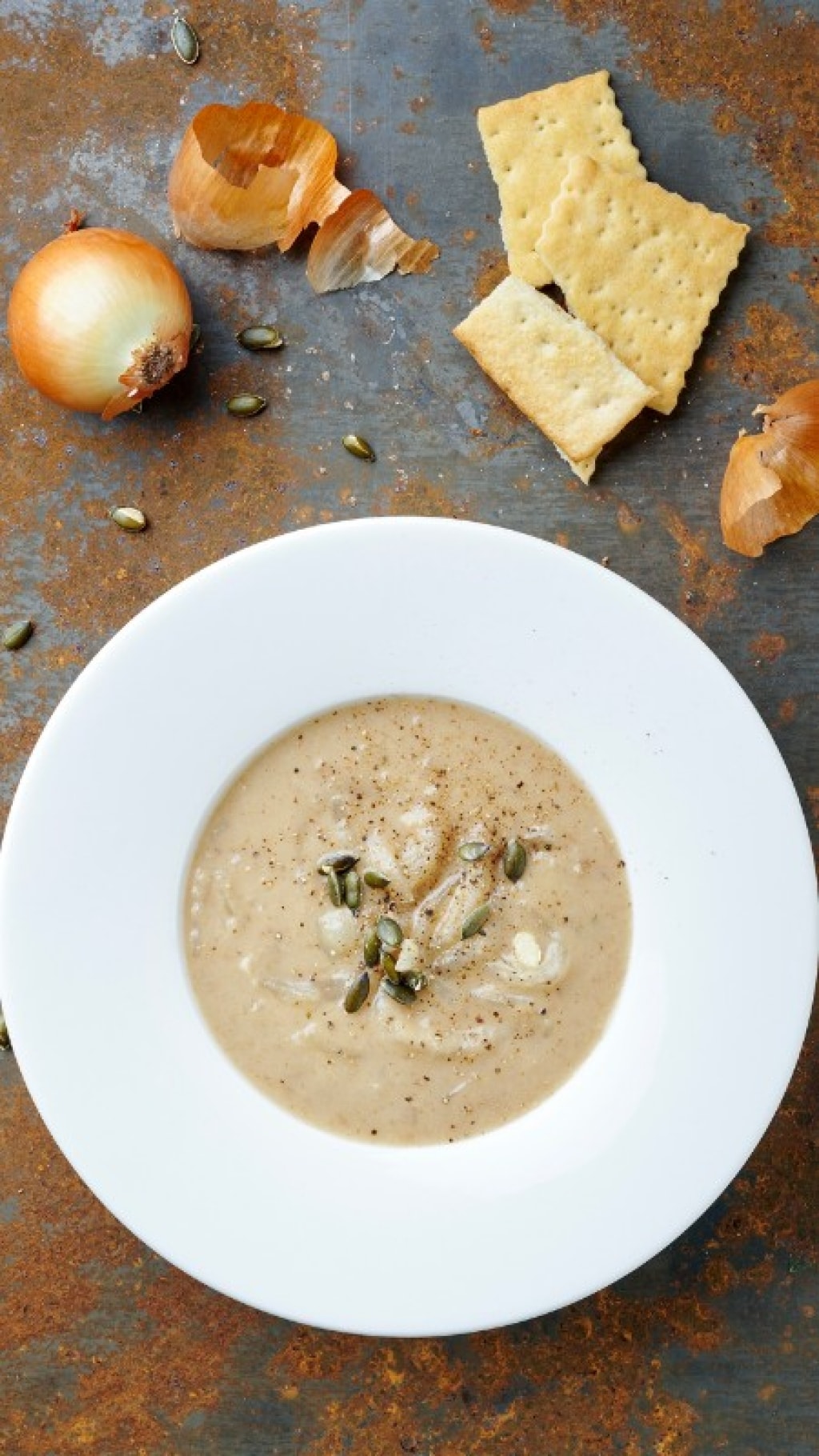 Se gradite una texture più cremosa frullate la zuppa di cipolle al whisky: vi suggeriamo però di tenerne da parte una cucchiaiata a testa per la decorazione del piatto. In alternativa ai semi di zucca, poi, potete dare morso al piatto con una manciata di nocciole tostate e sminuzzate.