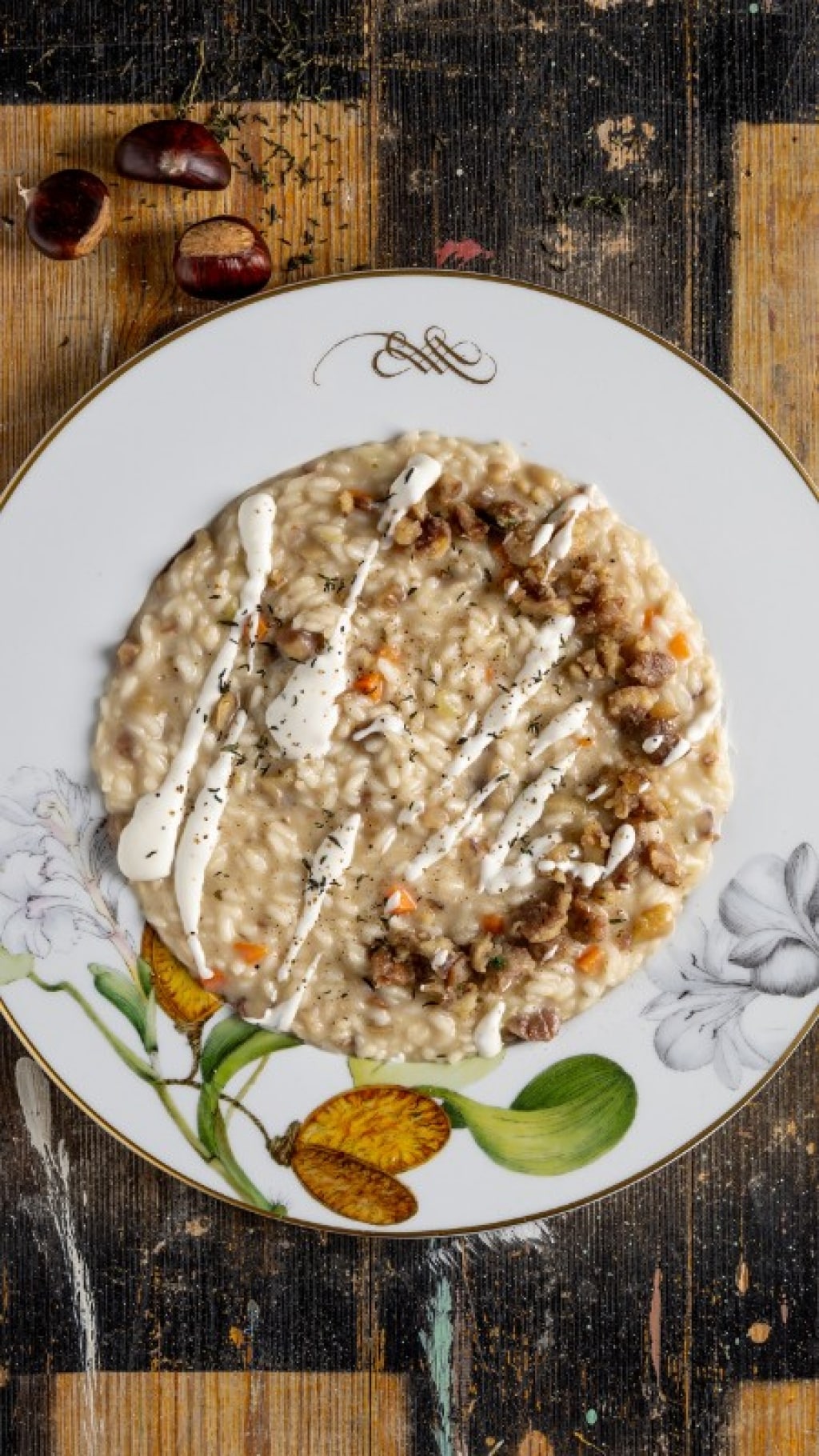 Il risotto alle castagne è la perfetta coccola autunnale, un morbido riso all'onda che regala un delicato sapore di base, vivacizzato dal profumo del timo e dalla lievissima punta acida della robiola.