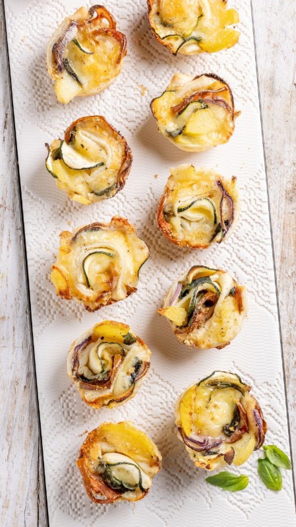 Questo piatto è una gustosa alternativa ai salatini di pasta sfoglia: piccoli scrigni monoporzione da cuocere nella teglia da muffin per un aperitivo o un antipasto goloso e originale.