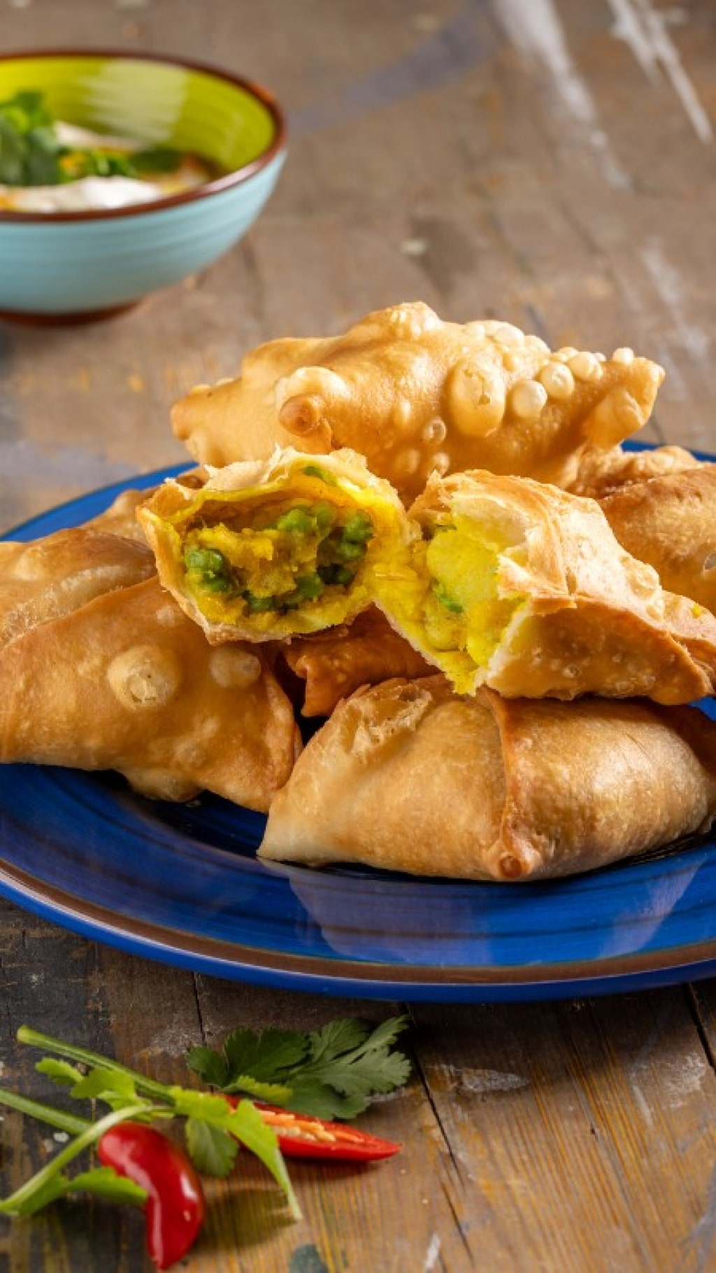 Servite i samosa, deliziosi sia caldi sia tiepidi ma anche a temperatura ambiente, come antipasto, sfizio da aperitivo o componente di una cena indiana. Insieme a pollo Tandoori e cheese naan.