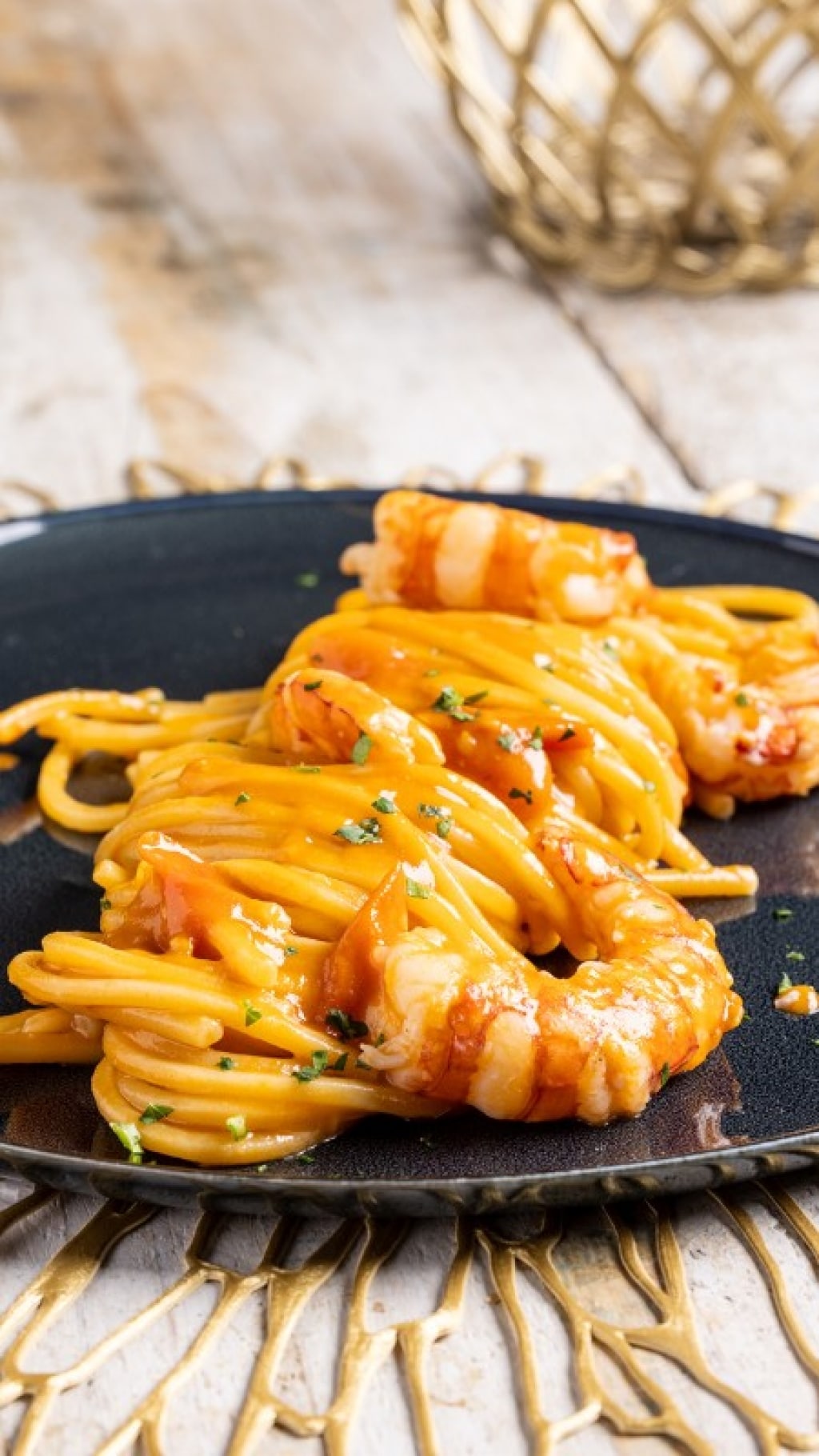 Un primo piatto semplice e gustosissimo, gli spaghetti con gamberoni conquisteranno tutti a tavola. Il brodo di gamberi con cui si completa la cottura della pasta dona cremosità e sapore unici al piatto, rendendo questa ricetta ideale per i vostri menù delle feste.