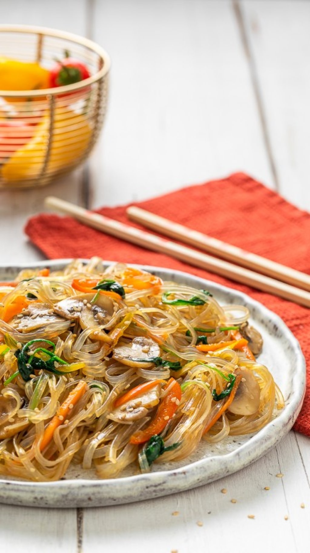 Gli spaghetti di soia, con la loro consistenza unica e l'aspetto morbido e trasparente sono molto versatili ed amati. Ve li proponiamo in una ricetta facilissima e vegana. Un'idea sfiziosa per una cena in famiglia o con gli amici in perfetto stile orientale.