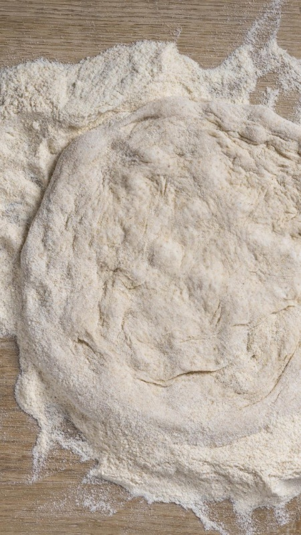 Terminata la seconda lievitazione dell'impasto in ciotola, potete stendere ciascuno dei quattro panetti. Rovesciate l'impasto sul piano da lavoro con la semola rimacinata. Appiattite il panetto, appoggiando delicatamente i polpastrelli seguendo un movimento a spirale in modo da definire il cornicione. Partite dal centro e spostatevi verso l'esterno. Questa fase è la pre-apertura dell'impasto ed è importante non apportare troppa pressione, per permette di preservare e distribuire in modo omogeneo tutti i gas di lievitazione.
