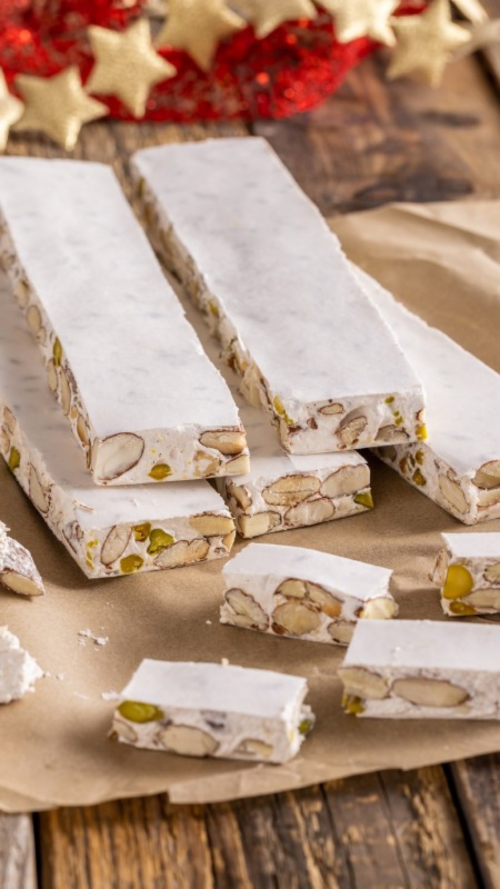 Si comincia con lo zucchero cotto, per cui è necessario anche il glucosio che potete acquistare nei negozi specializzati o anche online, si procede con il miele cotto, poi con la meringa e infine con il ripieno di mandorle e pistacchi. Vi serviranno, poi, due fogli di ostia per concludere la ricetta.