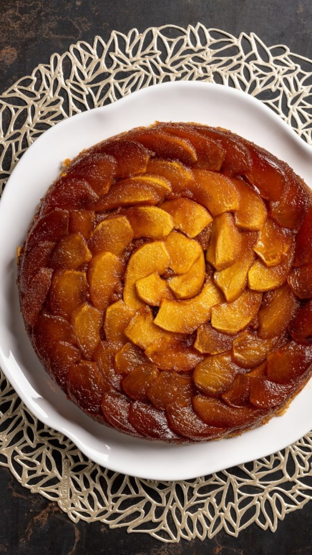 Terminato il tempo di cottura, togliete dal forno la torta e aspettate che si raffreddi completamente. Rovesciate la torta con l'aiuto di un piatto da portata. Ecco pronta la torta di mele rovesciata. Non è bellissima?
