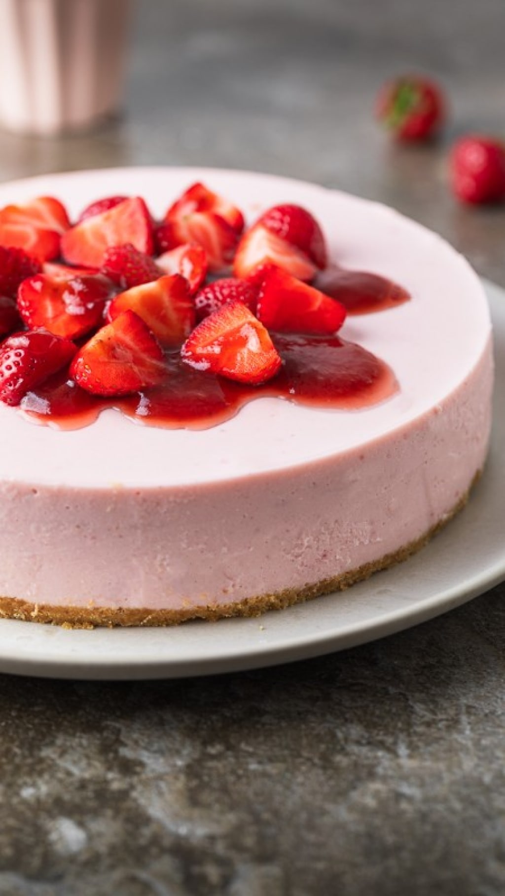 La torta fredda alle fragole è un dessert perfetto per la stagione dei dolci senza cottura. Elegante e romantico, nella sua semplicità, è l'idea giusta per coccolare gli amici a cena.