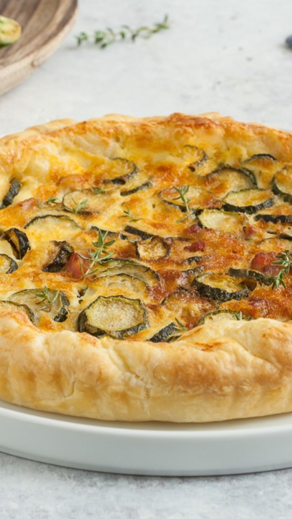 La torta salata alle zucchine è una ricetta che si prepara in 10 minuti. Un classico guscio di pasta sfoglia con ripieno di zucchine trifolate e pancetta affumicata: come antipasto o secondo, garanzia di buona riuscita anche quando il tempo per cucinare scarseggia.