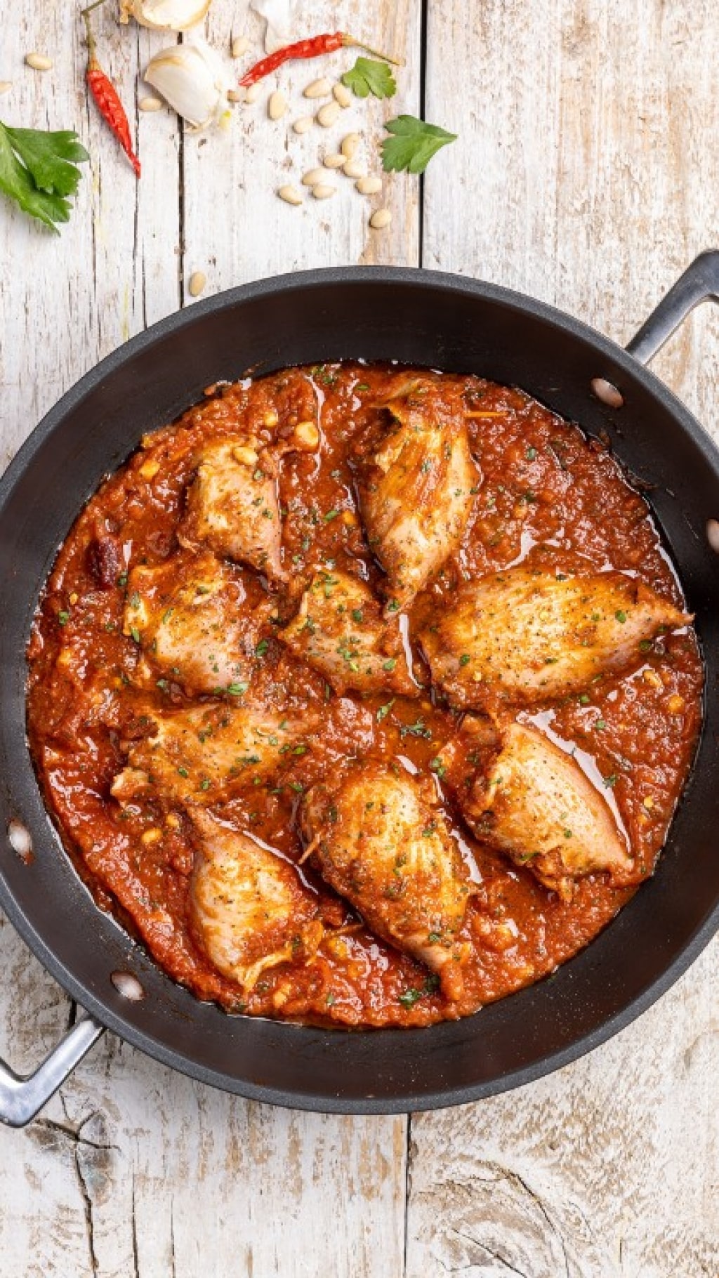 Cuocete per 30 minuti circa rigirando i totani di tanto in tanto, senza lasciar addensare troppo la salsa di pomodoro. Infine servite i totani ripieni in padella con una spolverata di prezzemolo tritato e un giro di olio.