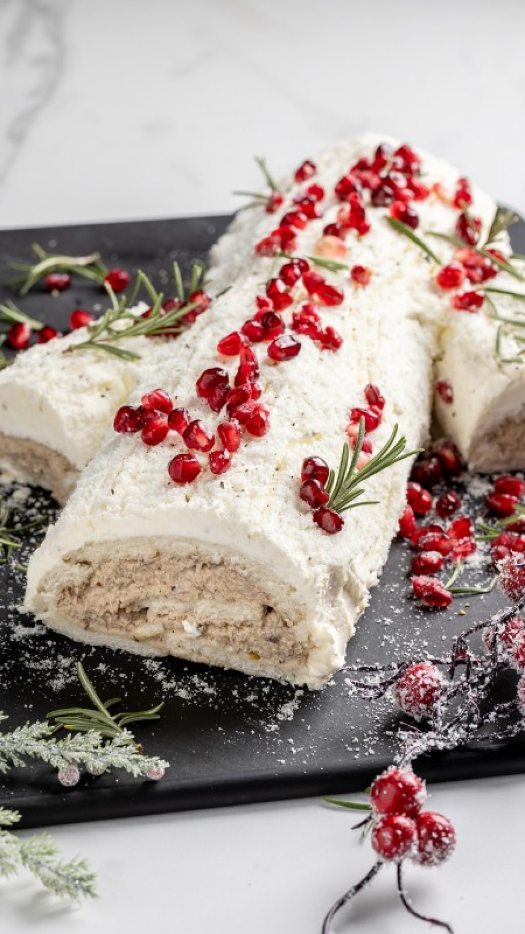 Il tronchetto di Natale salato è un antipasto gustoso e coreografico con il quale stupire amici e parenti durante le feste, alternativa originale al più classico panettone gastronomico.