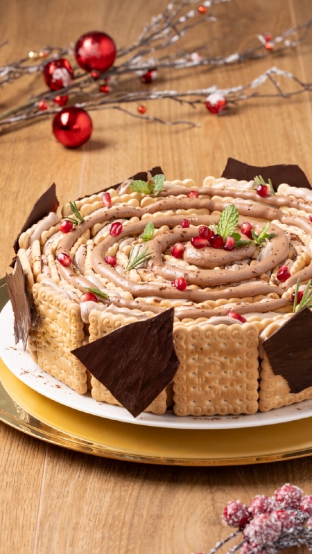 Il tronco di Natale con Oro Saiwa è pronto per essere gustato!