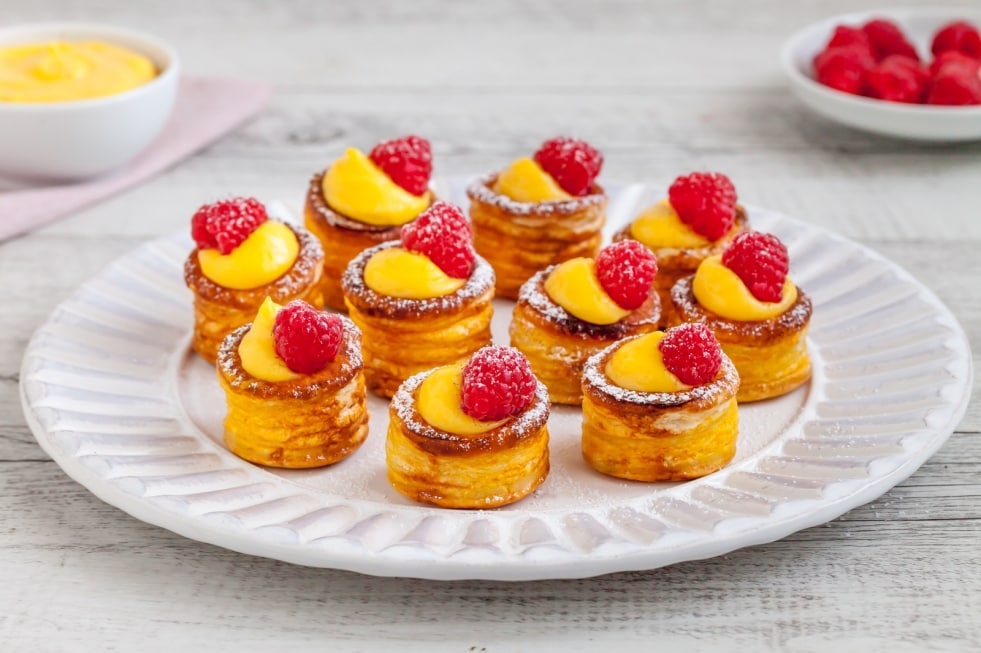 I vol au vent ripieni dolci sono bocconcini graziosissimi che svelano un contenuto delizioso: crema pasticciera e un rosso lampone. Ricetta facile e successo assicurato, questi dolcetti di pasta sfoglia sono perfetti per chiudere un pranzo speciale. Anche durante le feste natalizie.