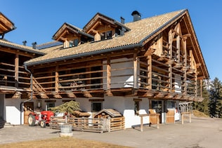 Anche nel fienile in larice si osserva la riproposizione di un’antica struttura, e ancor più nel ristorante dove ogni sala è il risultato di un sapiente riutilizzo di rivestimenti provenienti da antichi ‘allestimenti’, di cui l’ambiente tramanda il sapore. Questa impostazione, oltre a dare inizio al racconto sulla sostenibilità, getta le premesse per la filosofia non convenzionale del luogo, che vuole portare l’ospite autenticamente dentro la narrazione dell’agriturismo, tra ospitalità e agricoltura.