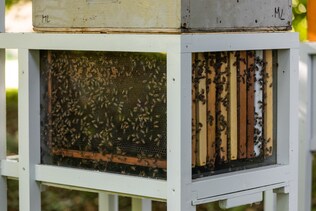 Abbiamo svolto l’operazione di estrazione con l’aiuto del signor Luciano Mazzola, l’apicoltore che sta seguendo con noi i due alveari nelle arnie urbane B-BOX posizionate nel giardino di Editoriale Domus. Prima di raccontarvela, però, vi informiamo sulla loro salute: come stanno le nostre api? Possiamo dire con gioia che conducono una buona vita (nonostante il clima non abbia risparmiato giornate afose e rovesci quasi tropicali): non presentano malattie, non si è verificata nessuna moria - potevano, per esempio, soffrire di qualche diserbante o pesticida trasportato nell’aria dai dintorni - e le regine hanno garantito delle buone covate. Considerando l’importanza che hanno gli insetti impollinatori per il nostro ecosistema, siamo contenti che stiano bene!