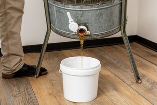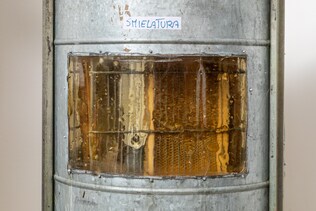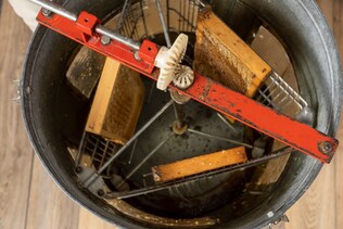 Per avere il miele in purezza, senza tracce di cera, si passa alla fase di smielatura vera e propria, ma ci si deve avvalere di uno strumento chiamato smielatore. Ovviamente ce ne sono di varie fogge e dimensioni, più moderni o meno, manuali o meccanici a seconda delle necessità di utilizzo, ma si tratta fondamentalmente di una grande centrifuga che una volta in movimento separa tutto il miele dai melari, per raccoglierlo attraverso una bocchetta nel contenitore prescelto. Poi dovrà decantare per circa 20 giorni, al fine di eliminare tutta la cera in eccesso. Nel nostro caso, lo smielatore è manuale e apparteneva al nonno del signor Luciano: non vi abbiamo detto, infatti, che per lui l’apicoltura è un “affare di famiglia”, tanto che anche il figlio mantiene viva l’eredità.