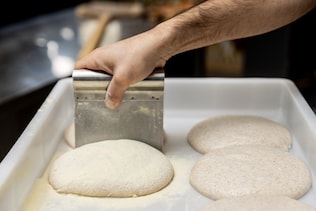 Quadri colorati che si gustano con gli occhi. Le pizze sfornate da Daniele Falcone a mosso arrivano in tavola e si fanno notare. Non solo per la composizione dell’opera, ma anche per i profumi. Come si ottiene una pasta così fragrante fuori, e morbida dentro? Rituali all’apparenza scontati (spoiler: non lo sono per nulla!), che si ripetono ogni giorno a partire dal lievito, materia da conoscere e con la quale entrare in sintonia. “Bisogna prendersi cura del lievito, che va rinfrescato quotidianamente e compreso, nel vero senso della parola. - spiega Daniele Falcone - È necessario capire quando doverlo inserire nell'impasto. Parliamo di una pasta acida, che tuttavia acida non deve esserlo troppo, come non deve avere odori strani, ma presentare la giusta dolcezza.” Una pasta trattata con attenzioni e affetto, dalla quale dipende il risultato. Concetto che è un po’ il mantra di Daniele: “Il lievito madre è la foto dell'impasto finale, di ciò che ti troverai a lavorare il giorno dopo".