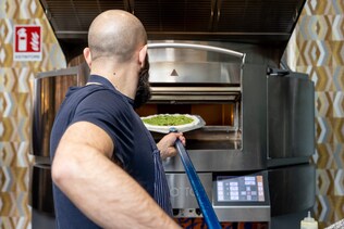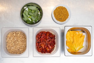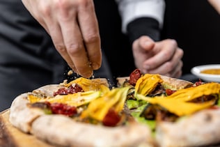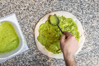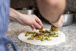 “Una pizza che deve ricordare al primo sguardo, e al primo boccone, i colori e i sapori della primavera. L’abbiamo dedicata principalmente alle verdure, valorizzando il vegetale di stagione, con protagonista la zucchina in diverse consistenze - spiegano Daniele e il braccio destro Andrea Mazza - la base va in cottura con crema di zucchine, mentre per il topping “fuori forno” aggiungiamo, fetta per fetta, chips di zucchine fritte, pomodorini semi dry, mandorle tostate e polline, che conferisce sapidità e particolare aroma.”