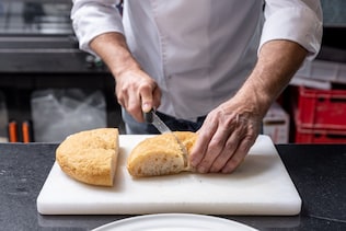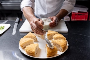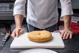 Renato Bosco ha preparato per noi una delle sue celeberrime Aria di Pane, che è talmente sua che ne ha registrato il marchio: nate nel 2009, le Aria di Pane hanno davvero dato vita a un nuovo concetto di pizza, iniziando dalla forma e dall’altezza.